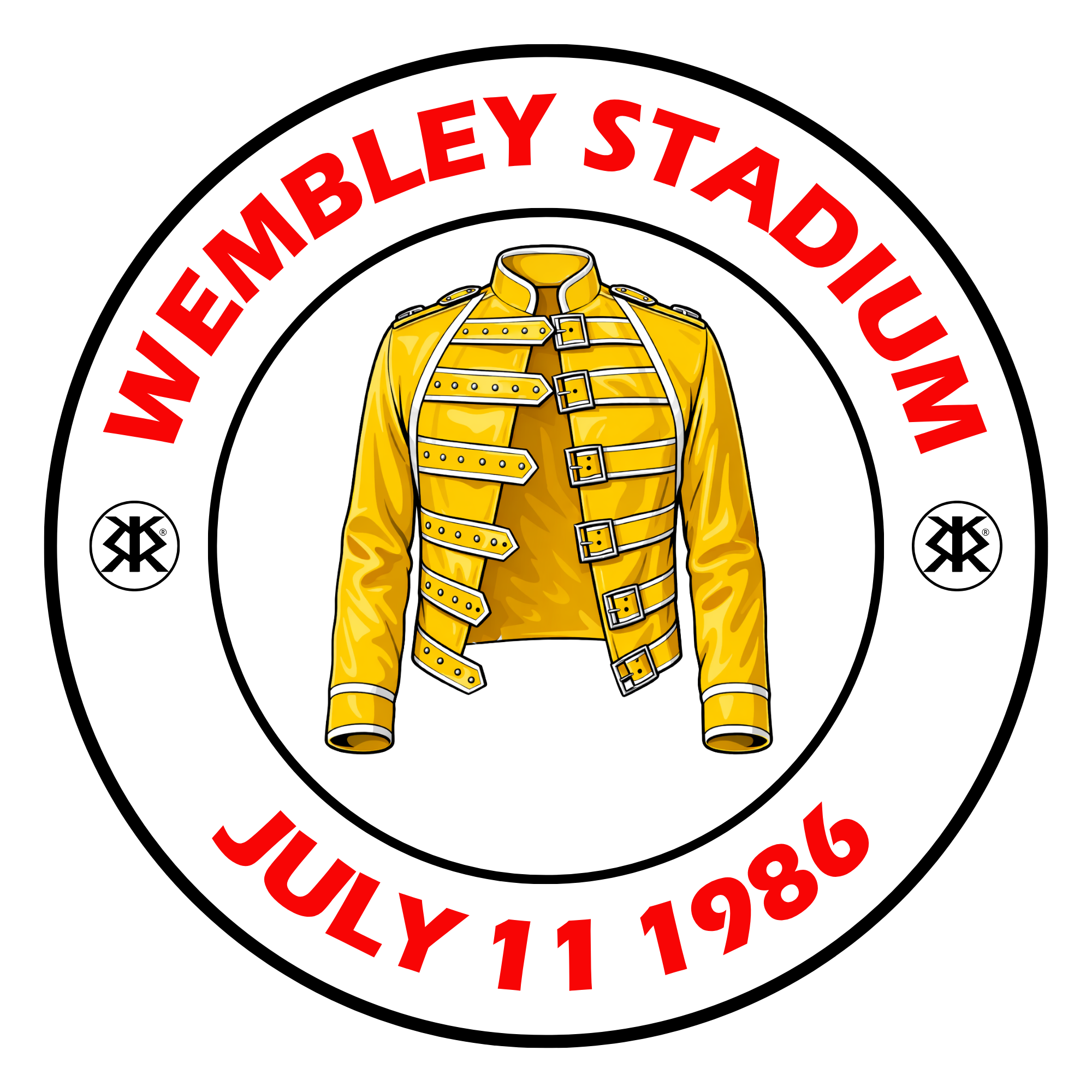 T-SHIRT TRIBUTO ALL`11 LUGLIO 1986, PRIMA DELLE DUE NOTTI SOLD OUT DEL MAGIC TOUR DI FREDDIE MERCURY E QUEEN AL WEMBLEY STADIUM. IN SCENA LA LEGGENDARIA GIACCA MILITARE GIALLA FIRMATA DIANA MOSELEY.